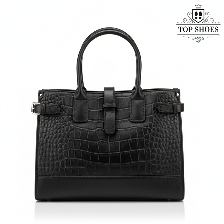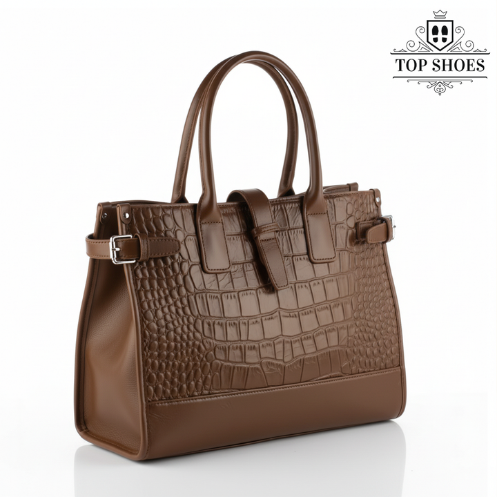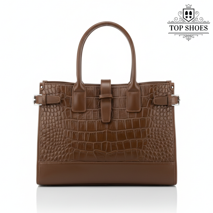 هذه الحقيبة ليست مجرد قطعة تُحمل، بل تحفة نادرة صُممت للمرأة التي تعرف قيمتها، وتبحث عن القوة الممزوجة بالأناقة الرفيعة. مصنوعة من جلد طبيعي بنقشة التمساح الفاخرة، بملمس غني يعكس تفرد الحرفية ودقة التفاصيل، لتكون عنوانًا للجمال الراقي والتفرد المطلق.