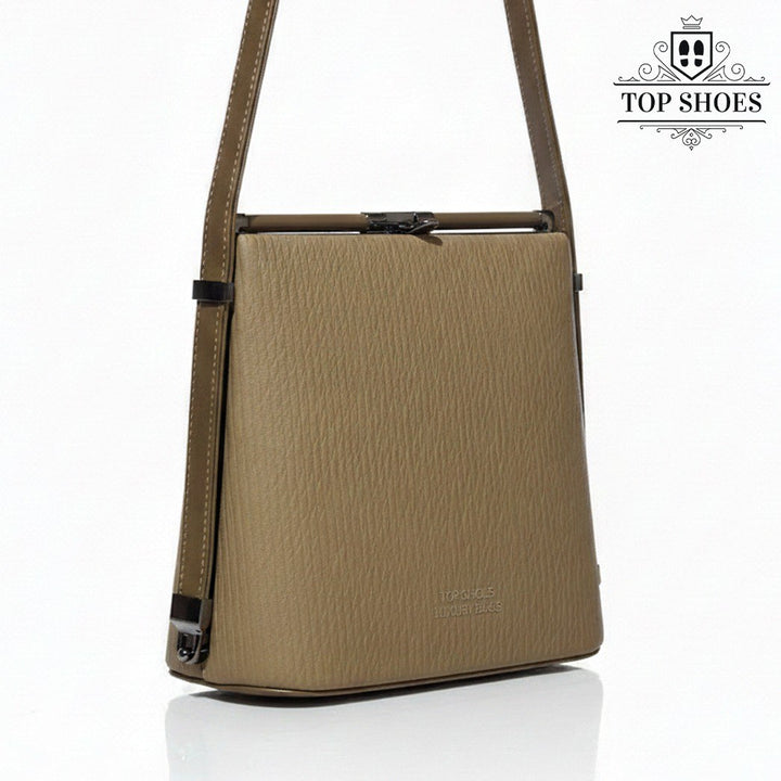 ، تتميز هذه الحقيبة بشكلها المميز الذي يتميز بوجود إطار خارجي صلب يضفي عليها هيكلية وثباتًا كما تتميز بجودتها العالية، وتصميمها الفاخر، وتفاصيلها الدقيقة، مما يجعلها إضافة مثالية لمجموعة المرأة العصرية وتعبيرًا عن أناقتها وذوقها الرفيع.