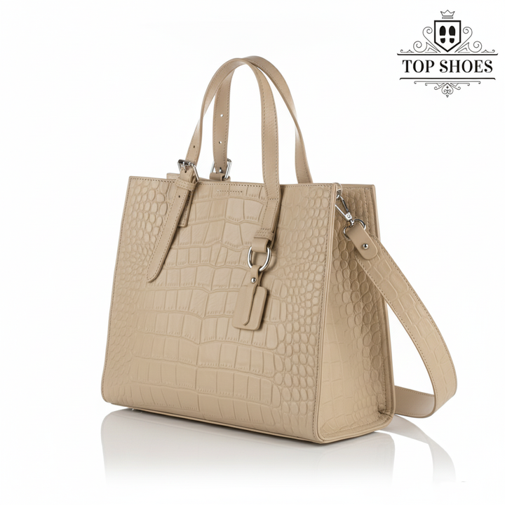 اكتشفي الفخامة في كل تفصيلة مع حقيبة Top Shoes المصنوعة من الجلد الطبيعي عالي الجودة بتصميم عصري ولمسة فخمة. مثالية للإطلالات اليومية والرسمية –