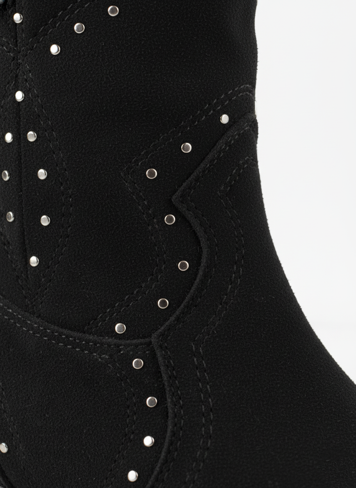 مصنوع من خامة سويد فاخرة ناعمة الملمس تمنحكِ إحساس الدفء والراحة في الشتاء، مع نعل مريح وكعب متوسط يمنحكِ الثقة في كل خطوة.