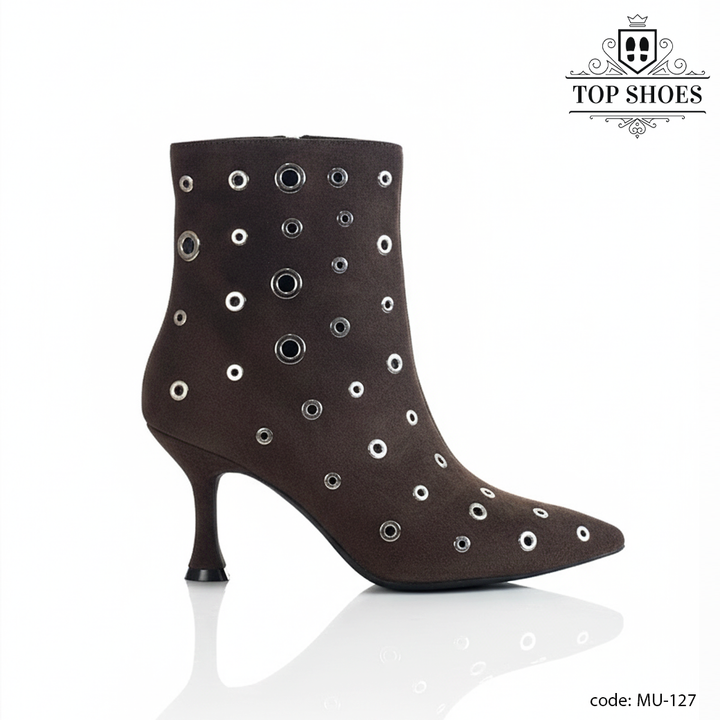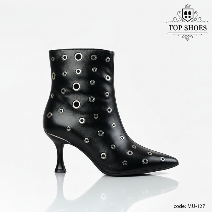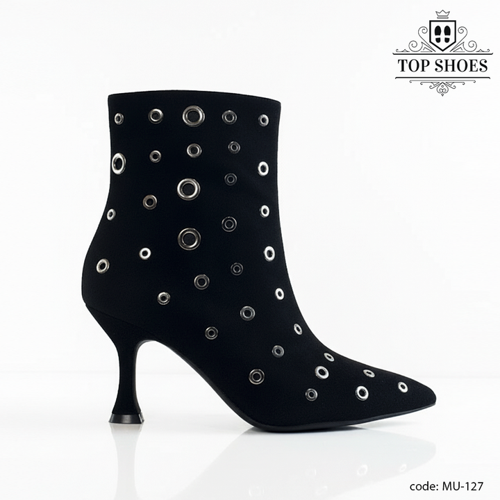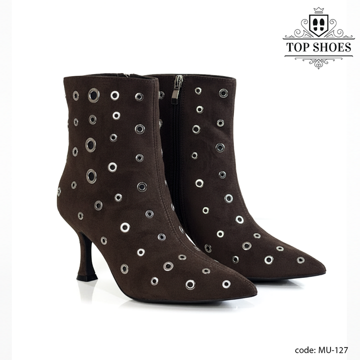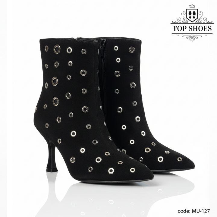 يأتي البوت بخامة فاخرة مرنة تلتف حول القدم براحة تامة، مع لمسات معدنية لامعة تضيف بعدًا عصريًا مميزًا.