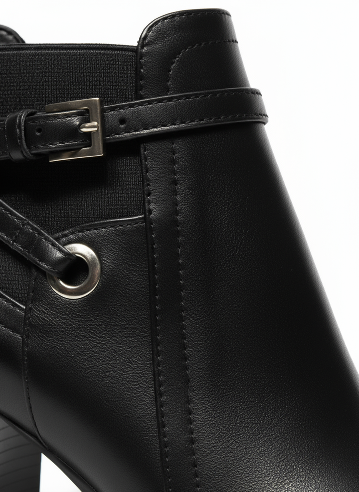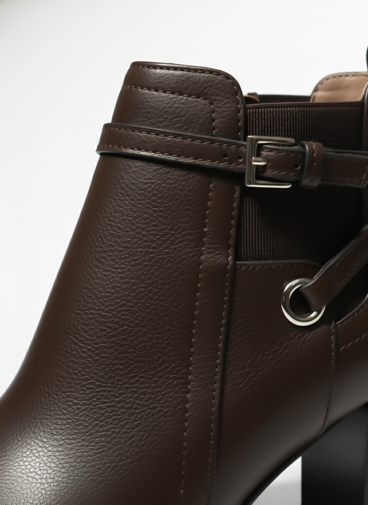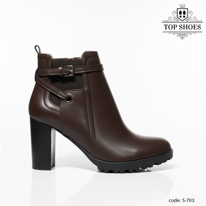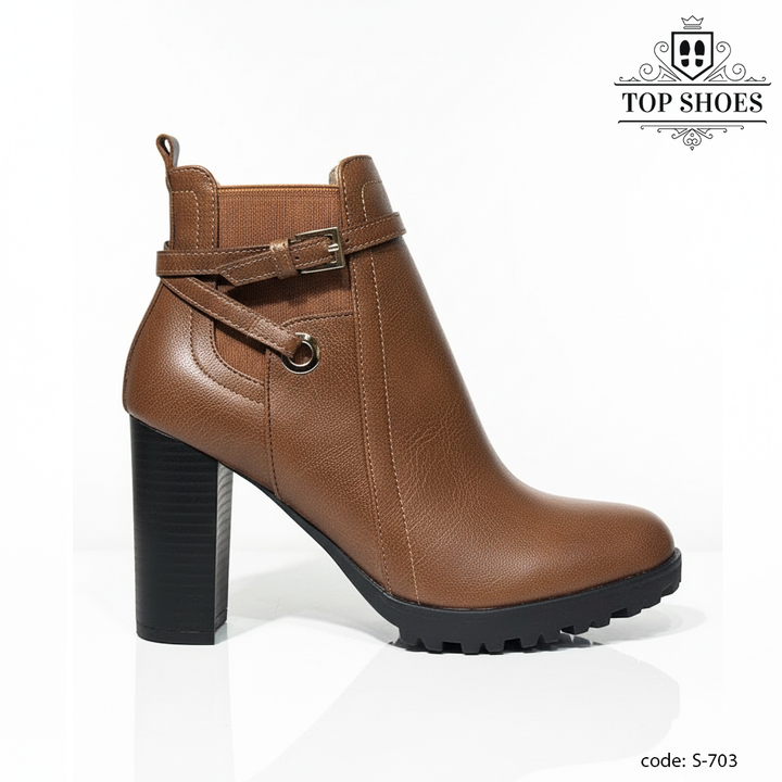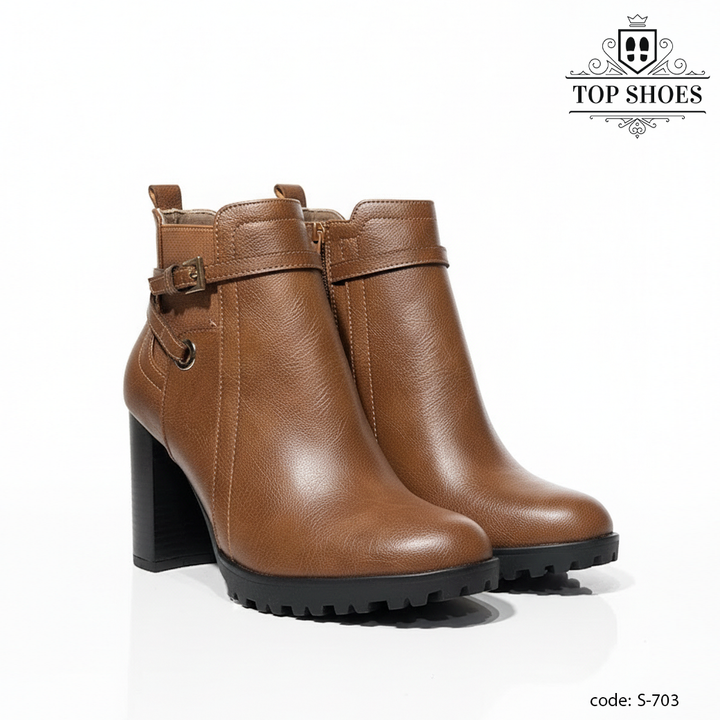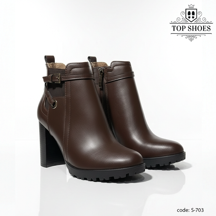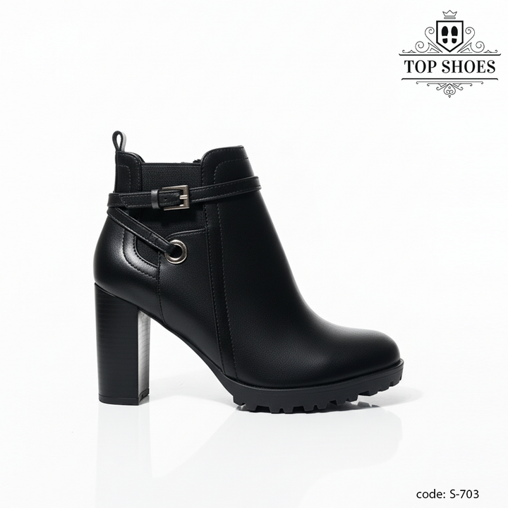 هاف بوت نسائي فخم من Top Shoes بتصميم راقٍ يجمع بين الأناقة والقوة. مصنوع من جلد فائق الجودة يمنح مظهرًا أنيقًا ولمسة ناعمة تدوم طويلًا. تصميم الحزام المعدني الجانبي يضيف لمسة من الجرأة والتميز، بينما يوفّر الكعب العالي ثباتًا وأناقة في كل خطوة. الخيار المثالي لإطلالة شتوية فاخرة تجمع بين الراحة والجاذبية.