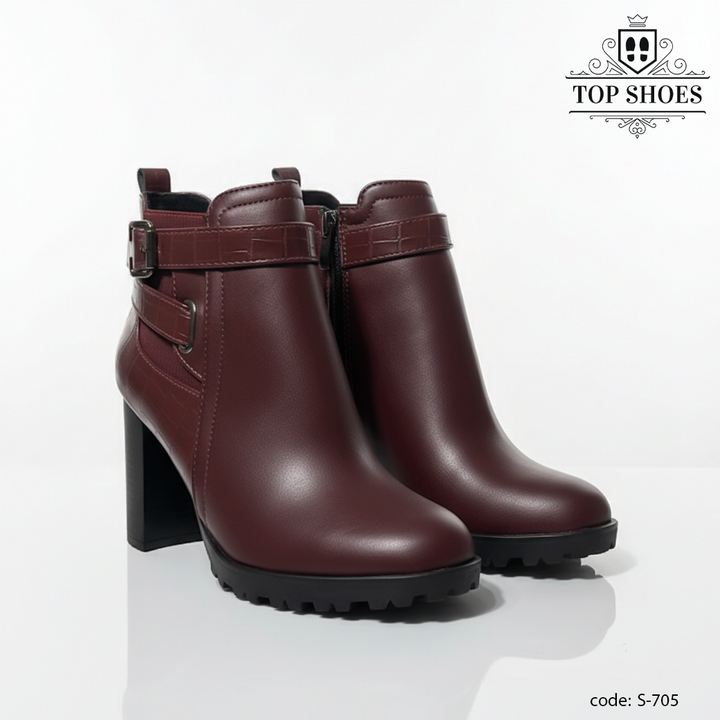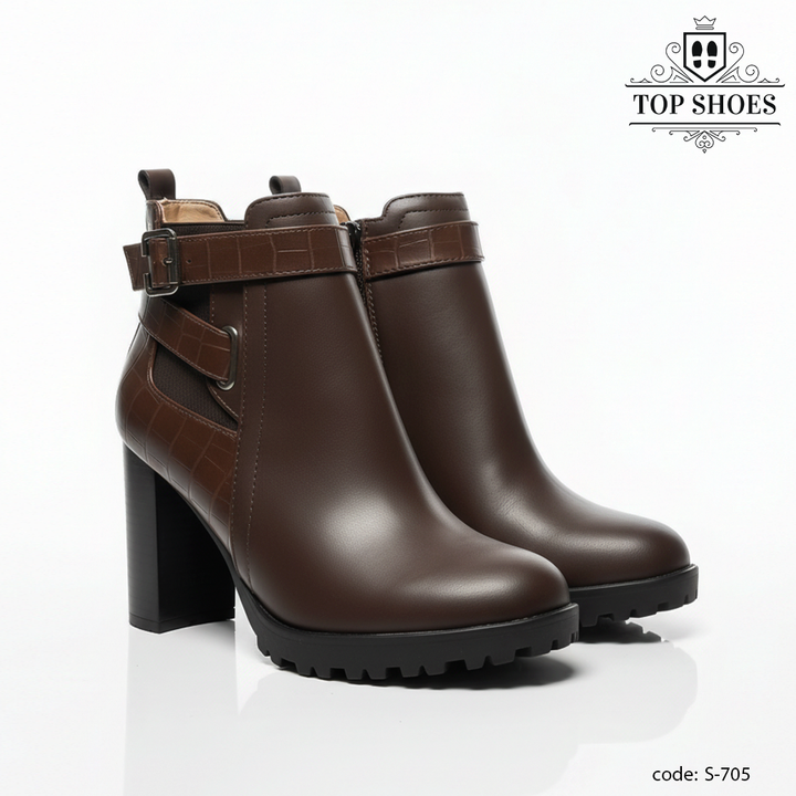 هاف بوت نسائي فاخر من Top Shoes لشتاء 2026، مصنوع من خامات جلدية عالية الجودة بملمس فاخر وتصميم عصري بكعب مرتفع يضفي لمسة أنوثة وأناقة استثنائية.