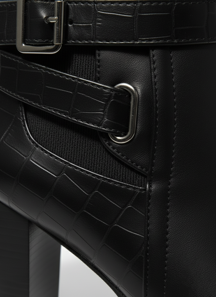 مزين بأحزمة معدنية أنيقة تضيف لمسة من الفخامة العصرية.